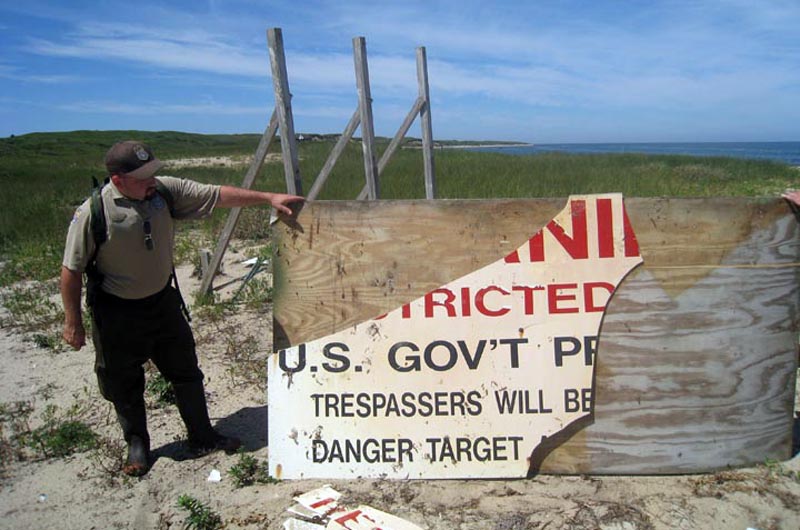 In 1998 the Navy transferred Nomans to another federal agency -- the U.S. Fish and Wildlife Service -- which in turn designated the island a wildlife refuge, closed to the public. This and posting 'No Trespassing' signs was also an evasion by the Navy of its responsibility to clean up its mess. A piece of land where it is unsafe for anyone to set foot is obviously not remediated. Nomans was more or less designated a national sacrifice zone.