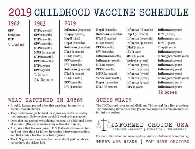 Below is a chart showing the expansion of the recommended vaccine schedule since 1962, noting a huge increase in recommended vaccines since 1962.